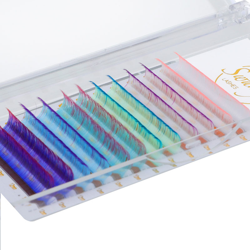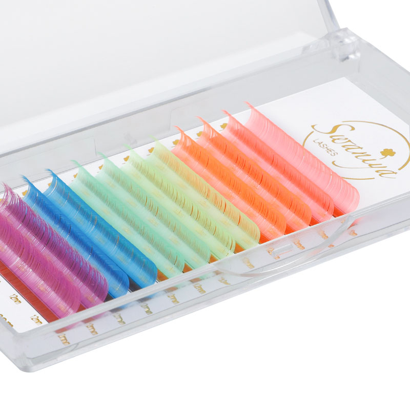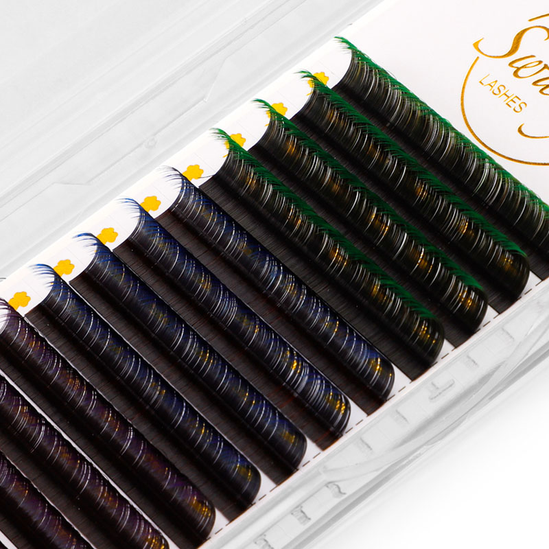 Auðvelt er að aðlaga Swaniya litrík augnháralengingar og hægt er að aðlaga þær til að passa hvaða augnform eða stærð sem er. Hvort sem þú ert að leita að lúmskum vísbendingum um lit eða djörf og dramatískt útlit, þá eru þessar litríku augnháralengingar besti kosturinn þinn. Auk þess eru þeir léttir og þægilegir að klæðast, sem gerir þér kleift að flagga litríku augnhárunum þínum með sjálfstrausti allan daginn.