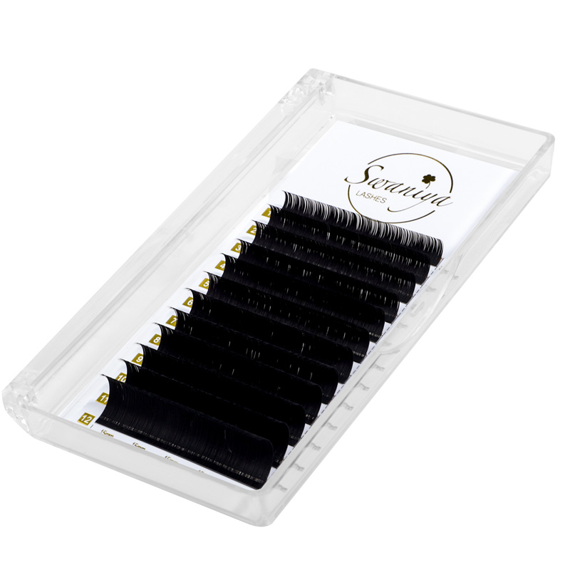 Swaniya Classic Lash Extensions eru með mattan svartan lit án blás blæ, sem gerir þær fullkomnar til að búa til klassískt augnhárasett. Djúp svarti liturinn hjálpar til við að leggja áherslu á náttúrufegurð augnanna og láta þau virðast stærri, bjartari og lokkandi.